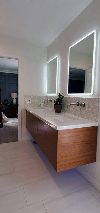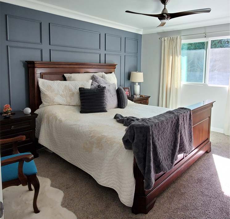 This bathroom and bedroom remodel was inspired and dedicated to my client’s in-laws that moved to San Diego from Costa Rica whom had to wait longer to get here because of the pandemic. In addition to the bedroom and bathroom, the remodel also included a new laundry room and a custom designed walking closet .