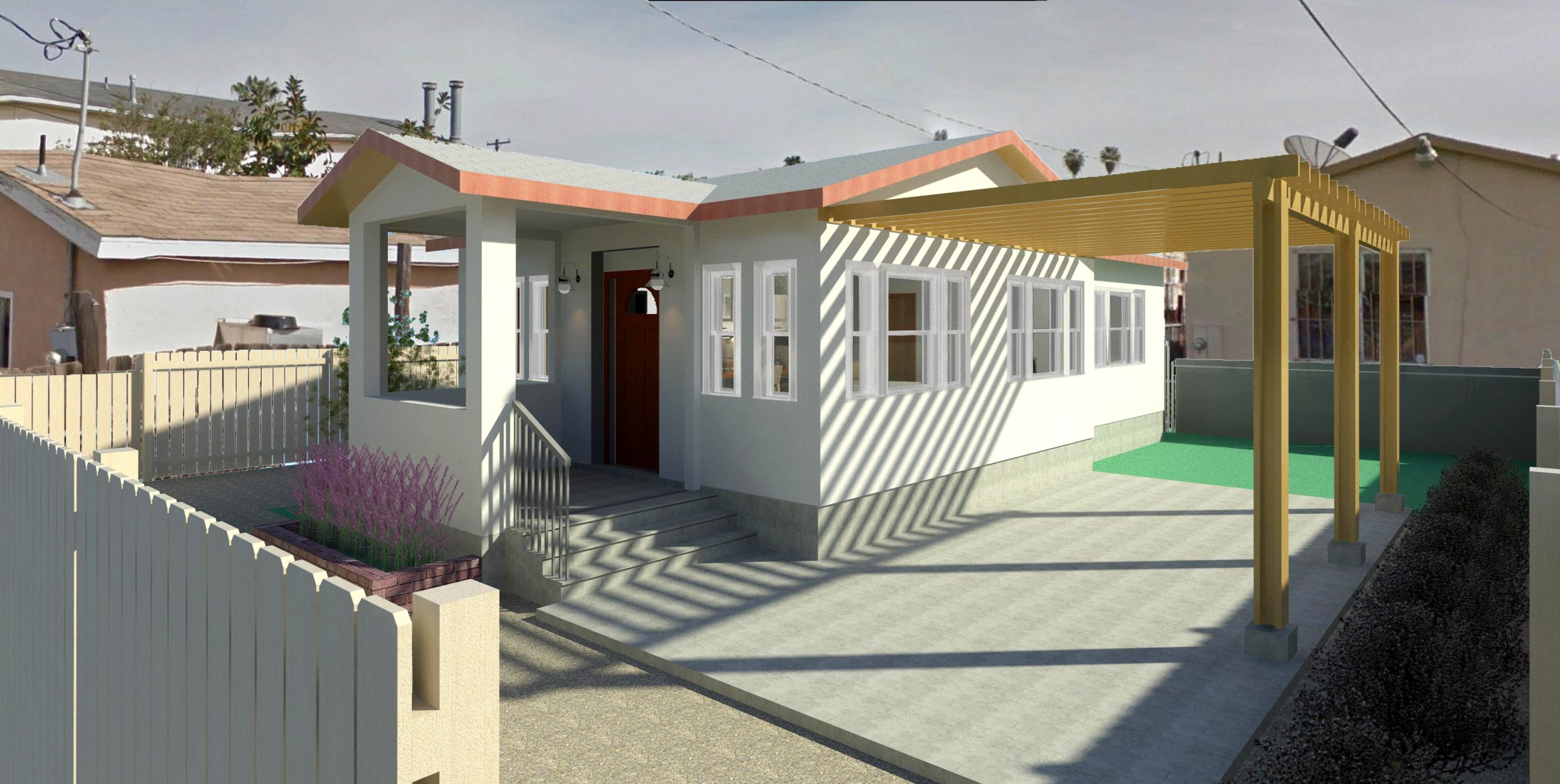 Accessory Dwelling UnitCity Heights, CaProject Size: 680-SF2015-2016 This detached ADU occupies 680 square feet in the City Heights Community with access from an alley, perfect for this kind of rental property. The site has an east-west orientation allowing it to have northern light in the bedroom and living area. The pergola both designed for a […]